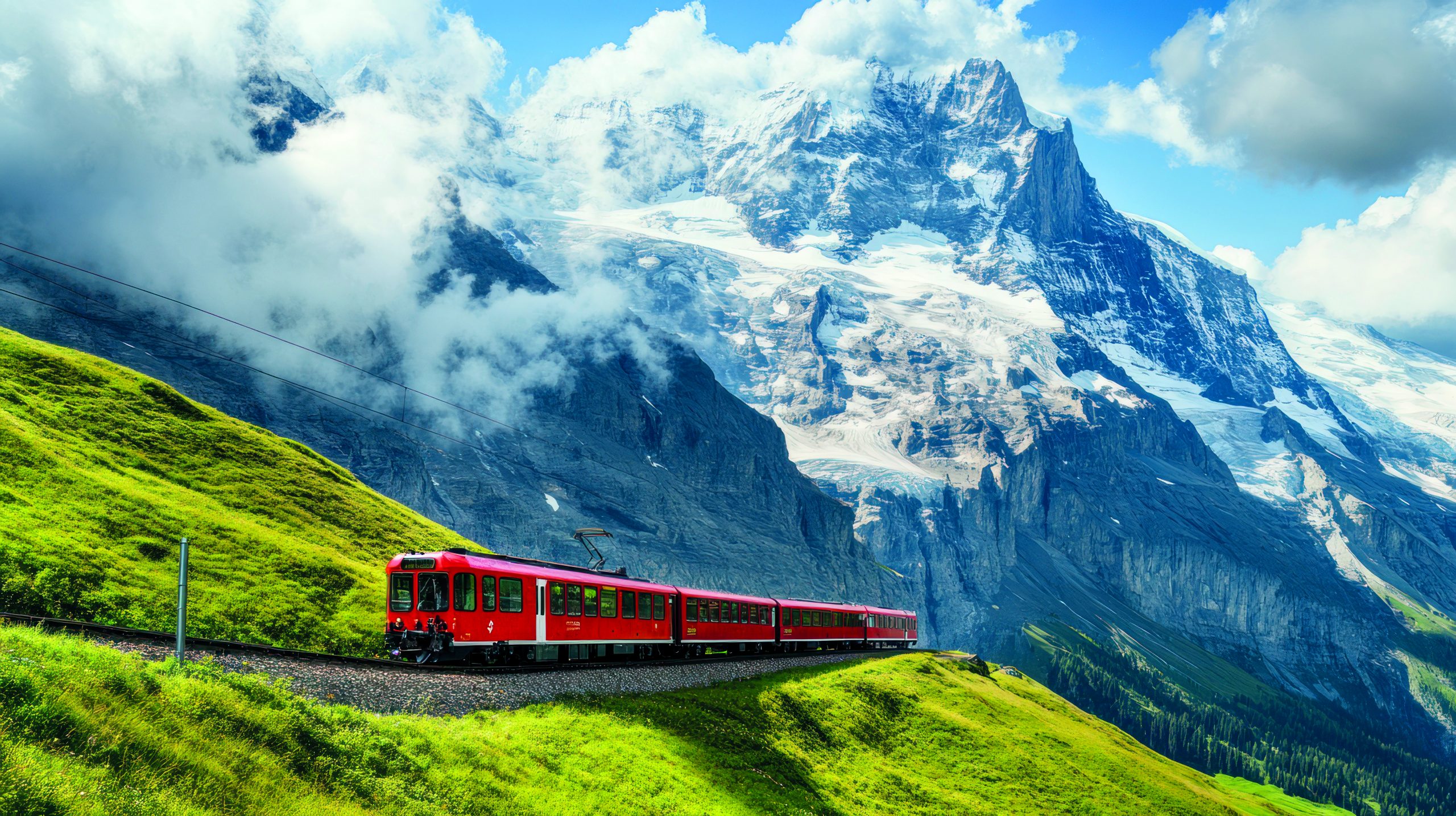 Petit-déjeuner et départ en autocar vers Lauterbrunnen. A l’arrivée, rencontre avec votre accompagnateur et excursion en train à crémaillère 2ème classe, sur le mythique chemin de fer, jusqu’à la Kleine Scheidegg. Vous traverserez des paysages époustouflants, tant le spectacle des Alpes suisses est total. Tout au long du trajet qui vous mènera à la Kleine Scheidegg, vous traverserez des prairies et des forêts et vous vous rapprocherez toujours plus des glaciers impressionnants de l’Oberland bernois. Puis le trajet se poursuit vers Eiger Gletscher ou à l’arrivée, vous emprunterez le téléphérique qui vous conduira en vingt minutes à la station de Grindelwald. Déjeuner au restaurant. Après le repas, découverte libre de Grindelwald. Le célèbre village de montagne se niche dans un paysage alpin unique au pied de la paroi nord de l’Eiger. Reprise de l’autocar en direction d’Interlaken. Blottie entre les lacs de Thoune et de Brienz et dominée par la célèbre triade de l'Eiger, du Mönch et de la Jungfrau, cette ville suisse vous séduira par son cadre naturel exceptionnel. Après une promenade dans Interlaken, retour à l’hôtel. Diner et nuit.